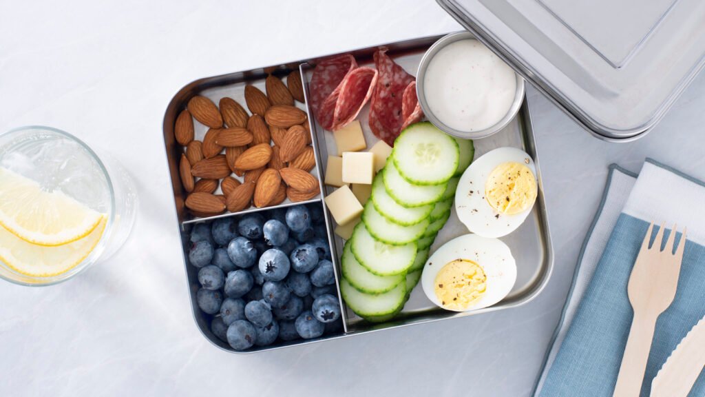 • Busca un buen equilibrio: El almuerzo ideal será saciante y nutritivo, dándoles a los niños la energía necesaria para afrontar el día. Intenta incluir frutas enteras o en bocados (como blueberries, melón mandarinas); verduras (ramilletes de brócoli, palitos de zanahoria, tomates cherry); proteínas (carnes, legumbres y mantequillas de frutos secos); lácteos (leche, yogurt o queso); y cereales (intenta que al menos la mitad de sus cereales sean integrales, como pan integral, galletas y barritas de granola).
